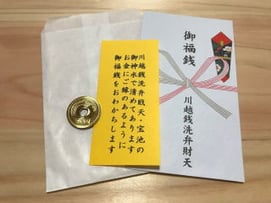 御朱印や授与品(500円以上)を受けられた方に、参拝記念として御福銭をお分けしています。
