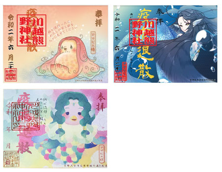 秋詣特別御朱印どれか1体+通常御朱印3体+アマビエ御朱印3体で4,500円(送料込み)