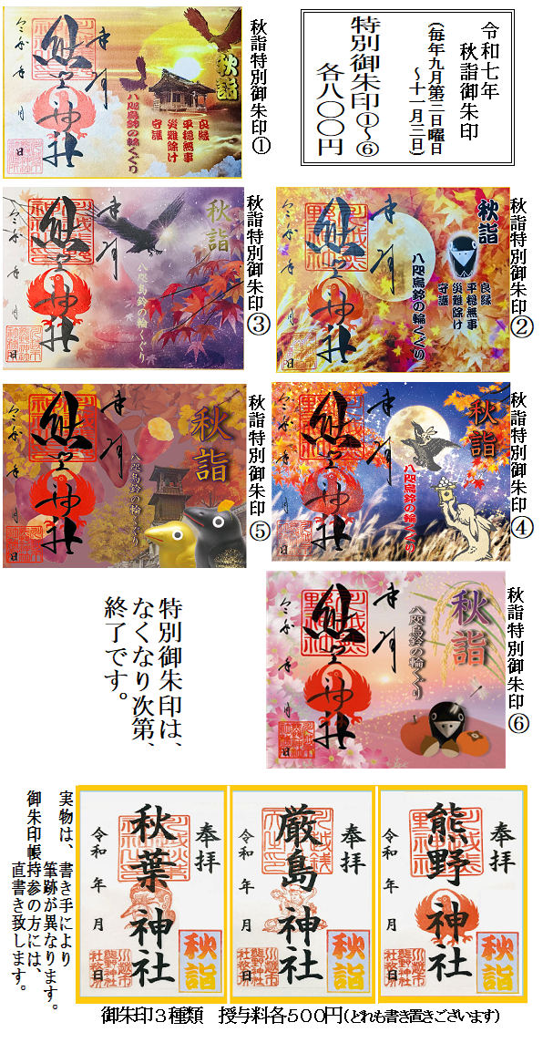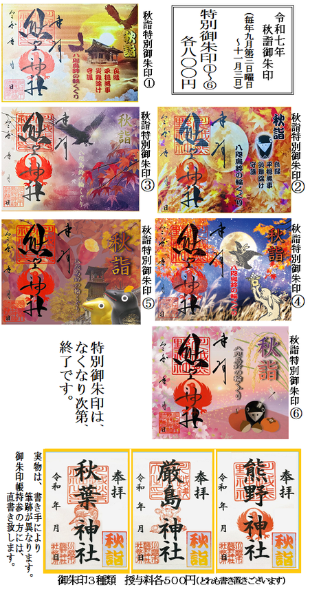 ※秋詣特別御朱印①や②、③、④、⑤をご希望の方は、令和7年秋詣御朱印申込みフォームでその旨をお書き下さい。