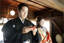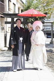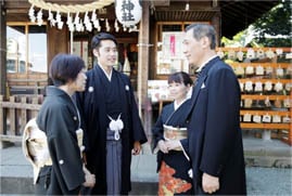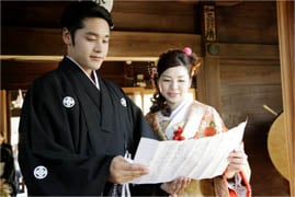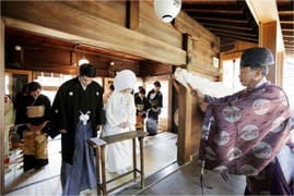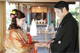 夫婦円満の神様として知られる天照大神(あまてらすおおみかみ)の御両親である「伊邪那岐命(いざなぎのみこと)」と「伊邪那美命(いざなみのみこと)」の神々に、二人の結婚を報告し、永遠の幸福を祈願する神聖な儀式です。