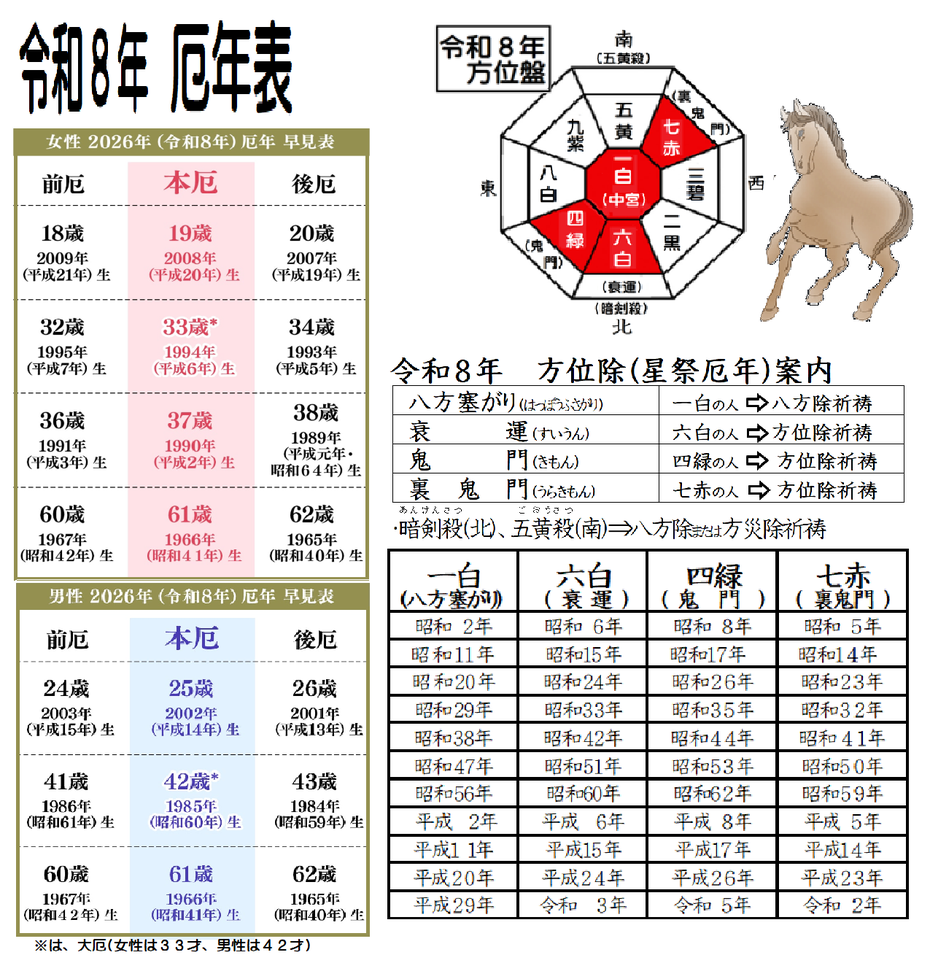 また年回りからみて良くない方向への引っ越しや旅行をされる方のお願いもいたします。
